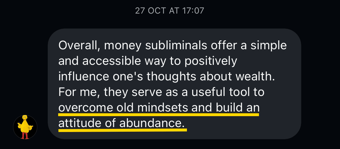 The hidden subliminal messages will help reframe your beliefs about money, while the brainwave synchronization puts your brain into the ideal theta state